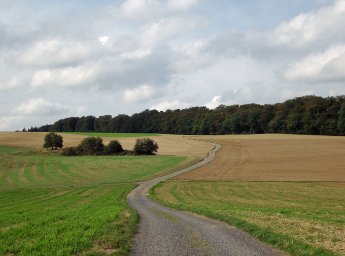 Die Wegeführung führt einen teilweise auch in Schleifen oder vermeintlichen Umwegen, wo man zunächst auf der Karte denkt „Warum gehts denn nicht dort lang, das wär doch kürzer“, aber dann führt der Weg an einem Feld vorbei, von wo man z.B. die Burg Ölbrück erblicken kann.