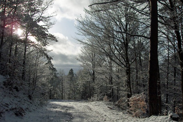 Bis auf 3 Hundebesitzer, die mit Ihren Hunden unterwegs waren, habe ich niemanden auf der knapp 10km langen Strecke getroffen. Einfach eine traumhafte Schneetour: das knarschen des Schnee´s unter den Schuhen, die größtenteils jungfräulichen Wege, die vor mir heute noch niemand gegangen ist, der feine Schnee der auf den kleinsten Ästen liegt, die Stille die über der Landschaft liegt. All das hat zu einer gelungenen ersten Winterwanderung beigetragen.