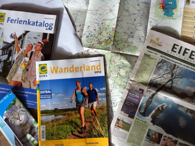 Das neue Jahr hat grade angefangen, die erste Woche arbeiten nach dem Weihnachts-urlaub hab ich hinter mir und schon beginnen die ersten Planungen für einen Kurzurlaub. Pünktlich zum Wochenende liegt in meinem Briefkasten ein dicker Umschlag. Auf der Seite Eifel.info habe ich vorgestern das aktuelle Themenprospekt Wanderland Eifel 2012 und das Unterkunftverzeichnis angefordert. Den Unterlagen liegen noch weitere Informationen bei und das Wochenende bietet sich prima an hierin zu stöbern und zu planen.