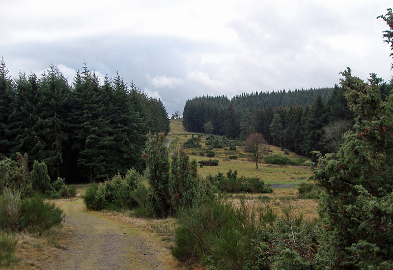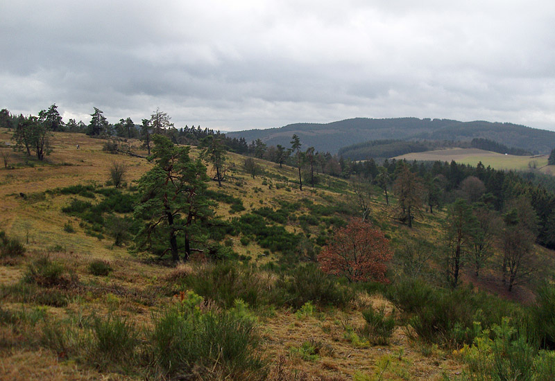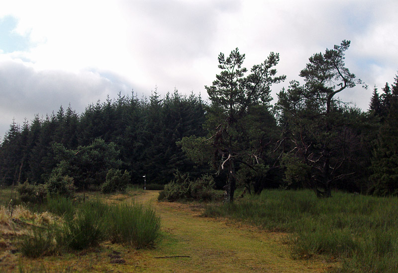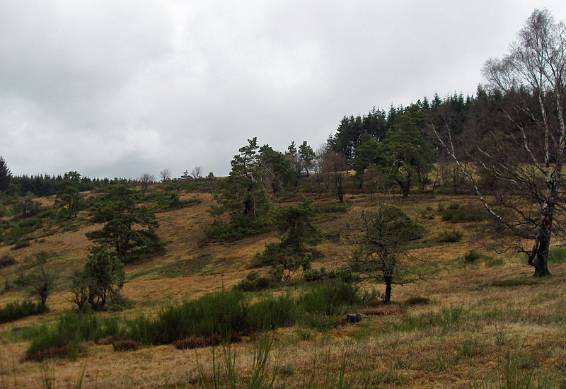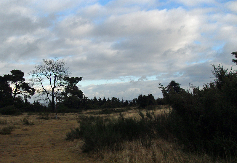 Warum ich wieder dort unterwegs war? Hat eigentlich einen ganz einfachen Grund: Die Wacholderheiden sind – und bleiben es vor allem im Winter – einfach grün. Auch der Ginster und die zahlreichen knorrigen Kiefern verstärken diesen Eindruck um ein vielfaches. Und die Heidelandschaft, Erika und das typische Borstgras vermitteln – ok, nicht grad bei dem Wetter heute – einen Hauch von Toskana.