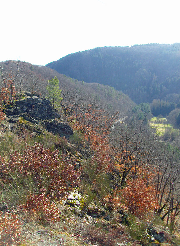 zwei Wochen ohne eine Tour; damit war am gestrigen Samstag Schluß und ich wollte mich für diese Entbehrungen mit einer Tour entschädigen, die ich bereits seit dem Erscheinen in deinem Blog auf meiner To-Do-LIste hatte und die nach deiner Beschreibung einige Kriterien erfüllte, die ich an eine interessante Strecke stelle. Und in der Tat: die Tour beginnt und endet mit einer nicht ganz alltäglichen längeren Passage, die für Mittelgebirgsverhältnisse die Bezeichnung „alpin“ mehr als verdient (m.E Schwindefreiheit und Trittsicherheit erforderlich). Aus diesem Grund, aber auch wegen des Zustands der Wege ist die Tour keinesfalls für einen Sonntagsspaziergang geeignet. In der Tat muss man auch bereit sein, den Schuhen eine gehörige Portion Matsch zuzumuten und den einen oder anderen auf dem Weg liegenden Baum zu übersteigen (in deinem Bericht der Abschnitt den du als „trailparcour“ bezeichnest; mittlerweile ist dieser Wegabschnitt nahezu überhaupt nicht mehr zu erkennen und etwa in der Mitte gibt es größere Wildschwein Schlammbäder). Im Vischbachtal bin auch ich dann wieder zum Felsgrat hochgestiegen um ein weiteres Mal die phantastischen Blick von dort oben zu genießen (allerdings hatte ich keine Schwierigkeiten am Ende den richtigen, wohl erst in neuerer Zeit angelegten, sehr steilen Aufstieg zu finden). Mein Fazit: eine tolle Empfehlung von dir, der ich mich uneingeschränkt anschließe. Auch wenn die Strecke nach meiner GPS-Erfassung nur 13,1 Km hat, sind die zu überwindenden 541 Höhenmeter ansprechend, so dass ich sehr gut gefordert nach 3 1/4 Std reiner Gehzeit wieder Ahrbrück erreichte.