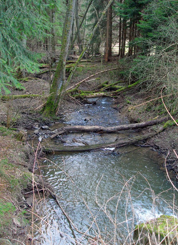 In Vischel angekommen sah ich rechts bereits Schloss Vischeldas unter Denkmalschutz stehende Schloss Vischel. Es ging nur kurz über Asphalt durch den kleinen Ort um dann nach links in einen weiteren Matschparcour abzubiegen. Zunächst ging es durch eine Allee um später auf einen Waldweg zu zweigen und nun dem Vischbach entlang zu folgen. Dieser sprudelte munter vor sich hin und begleitet mich die nächsten 4km. Der Weg war zwar matschig, aber der Bach schlängelte sich idyllisch durch dieses Tal, das der Blick automatisch immer wieder nach rechts ging.