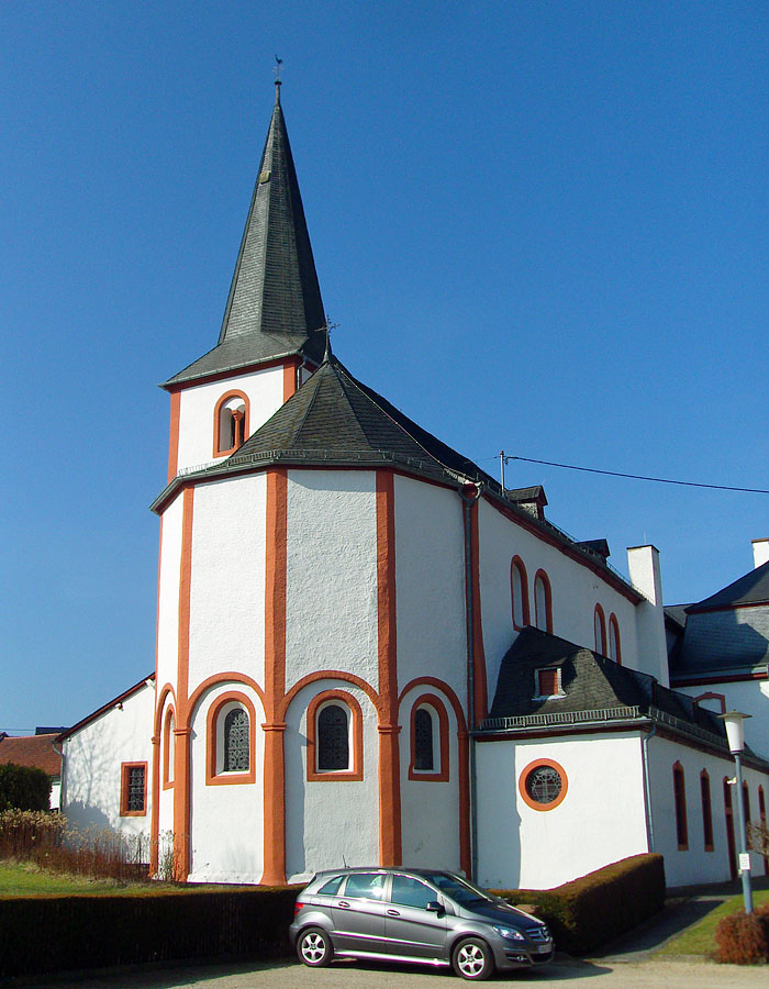 Also ging es zunächst durch das Ahrtal bis Adenau um dann bis Niederehe zu fahren. Das liegt kurz vor Hillesheim und so Mitten im Eifel-Krimi-Gebiet des Autors Jacques Berndorf. Schon bei der Anfahrt nach Niederehe konnte ich das Heidegebiet sehen, starte zunächst aber an der Kirche in Niederehe und muss ein Stück bergauf durch den Ort.