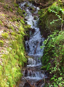 Von Ginster gesäumt führt der Weg  weiter hinab, es folgen Pfade und ich komme an einem zwar kleinen, aber dafür munter plätschernden Wasserfall vorbei um kurz danach ein drittes Mal die Lieser zu queren.