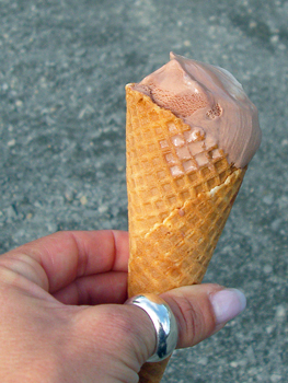 Ich quere den Ort und gegenüber vom Rathaus gönne ich mir ein leckeres Eis „auf die Faust“ (natürlich nicht direkt darauf, sondern umhüllt von einer knusprigen Waffel) in dem dortigen Wein- Café.