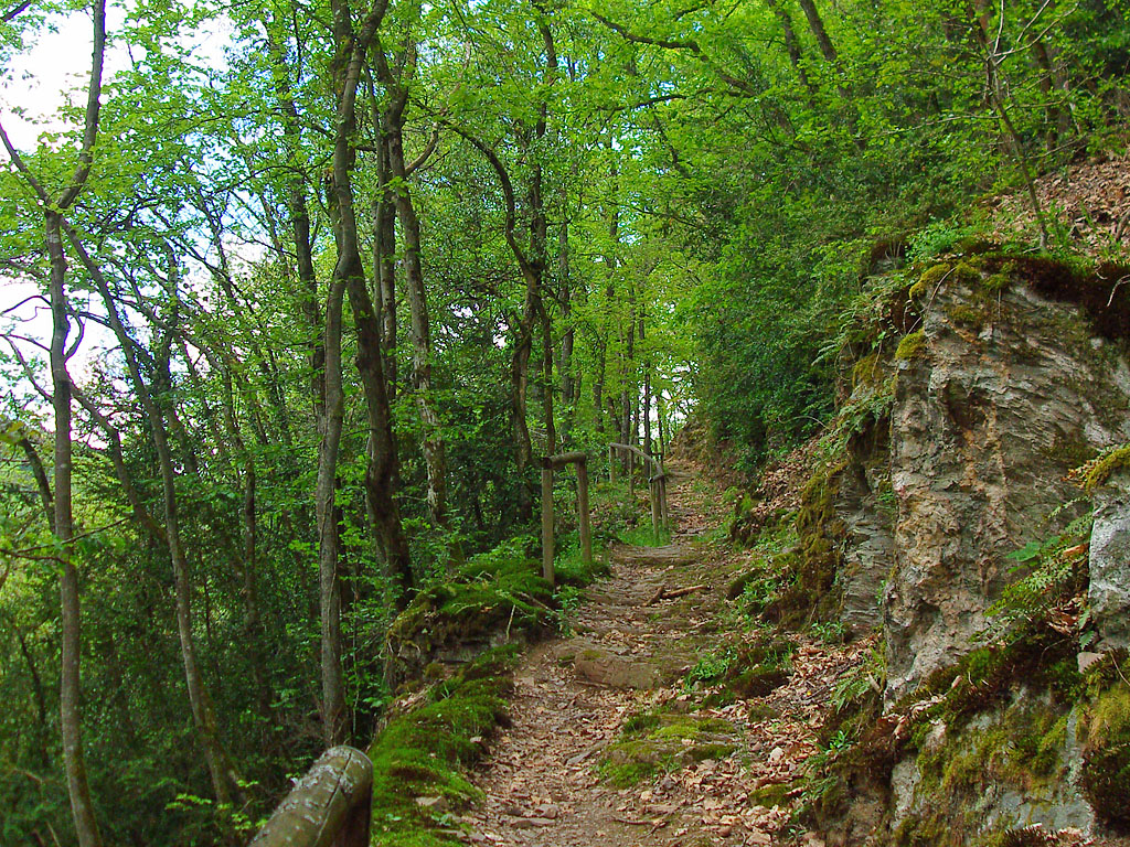 So führt der Wegeverlauf an den Steinzeithöhlen hoch zur Falkenlay, über Wiesen und zahlreiche Waldwege zurück nach Bad Bertrich.