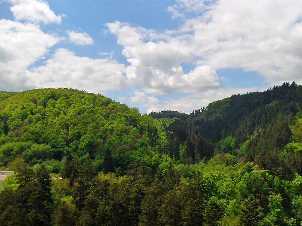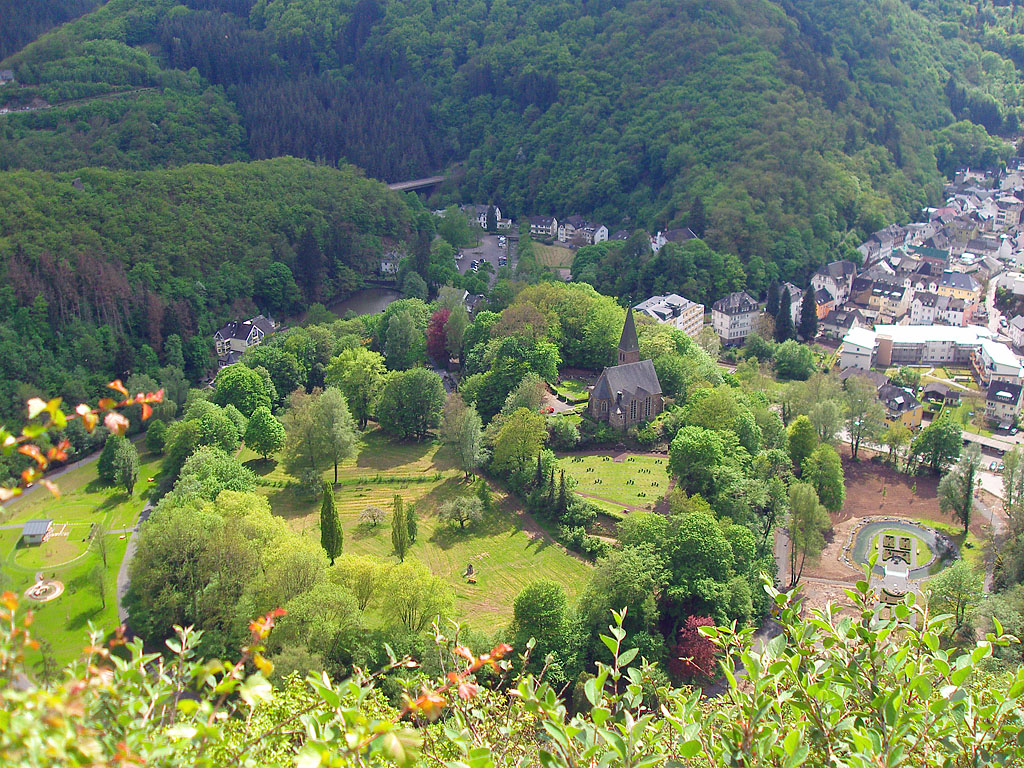 Von der Hohenzollernhöhe habe ich das erste Mal einen Blick von oben auf Bad Bertrich und kann den erst vor kurzem eröffneten ersten Landschaftstherapeutischen Park Römerkessel erkennen.