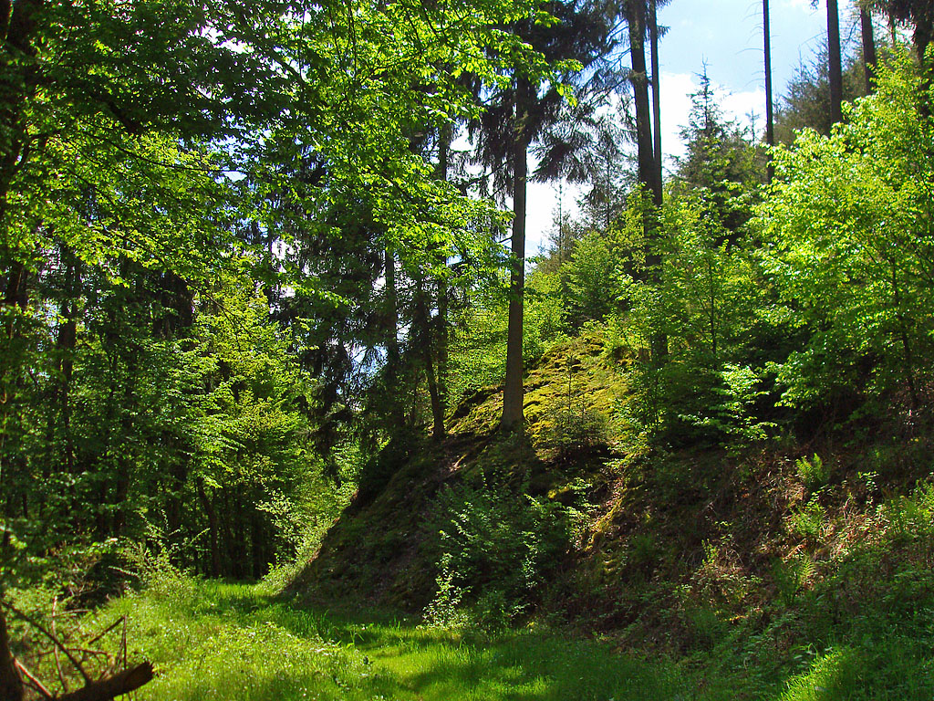 Auch wenn das Publikum in Bad Bertrich dadurch, das es ein anerkannter Heilkurort ist, zum Teil doch etwas älter ist, die Wanderwege drumherum sind jedenfalls leer. Weder Samstag noch Sonntag sind mir trotz schönstem Wetter auf den Wegen andere Wanderer begegnet. Lediglich zwischen Bad Bertrich und der Entersburg kamen mir vereinzelt welche entgegen. Ansonsten herrlichste Ruhe auf schönsten Pfaden.