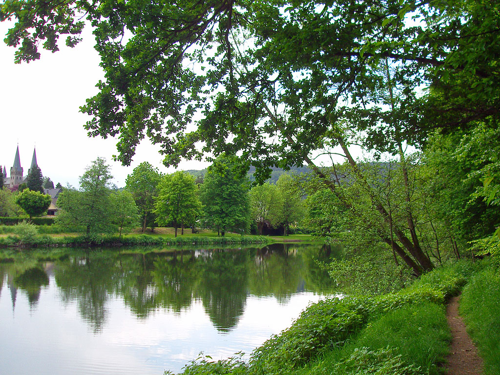 So bin ich heute um 9:15 Uhr in Herchen zu der 7ten Etappe gestartet und musste, nachdem ich die Sieg über eine Brücke gequert habe, in Herchen die zahlreichen Stufen (Mist… schon wieder nicht gezählt… sind geschätzt aber um die 100) hinauf. Vorher konnte ich mir aber noch einen Graureiher beobachten, der an der Sieg auf Beute wartete.