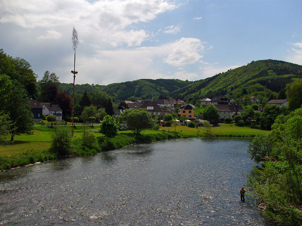 Der Zufall will es, das heute grade ein Einheimischer, der mit einer Beilage der Kölnischen Rundschau, die einen Artikel zur 8ten Etappe veröffentlicht hat, ein Teilstück davon um Schladern gehen möchte und mir anbietet ihn zu begleiten. Das tue ich natürlich gerne, zumal er mir versichert sich hier gut auszukennen.