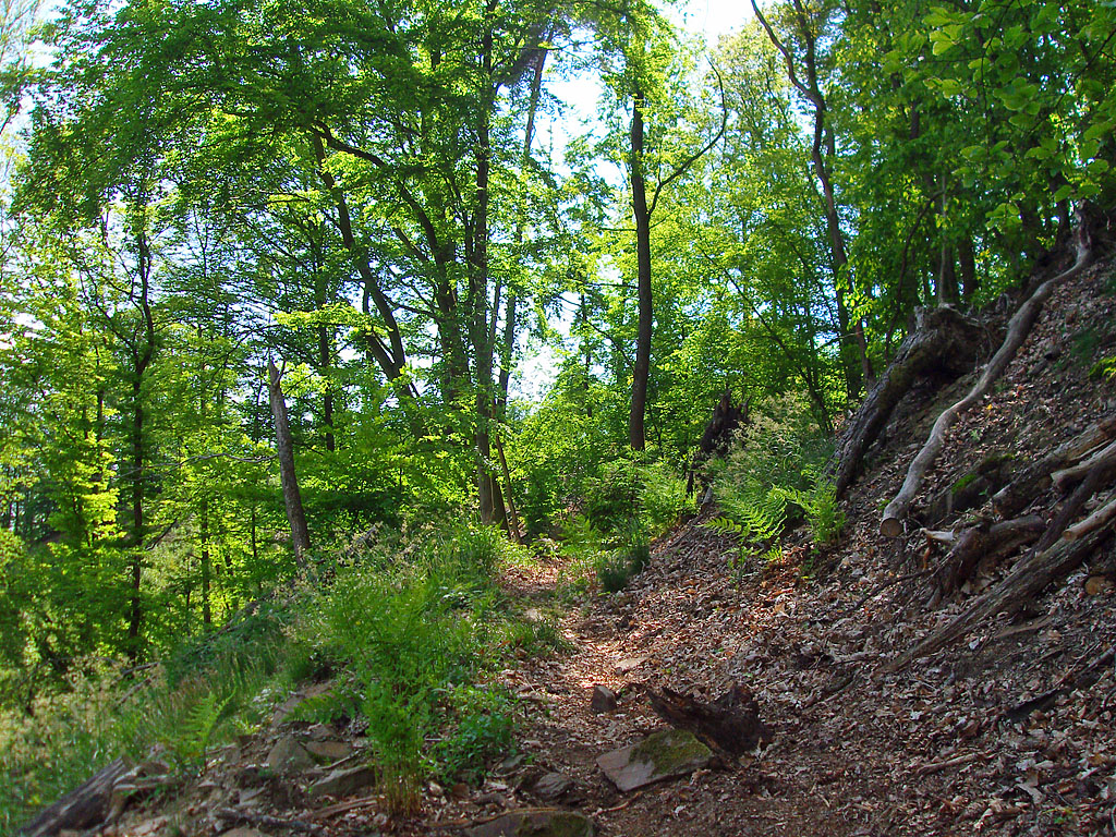 So geht es später wieder über Feldwege und ich erreiche Dreisel. Bis jetzt bin ich gut 12km unterwegs und durch die letzten Kilometer, die viel über Asphalt und Forstwege führten, schmerzen die Füße ein wenig. Ich überlege sogar, die weit durch das Tal führende Schleife abzukürzen (was an dieser Stelle ganz gut geht) entscheide mich dann aber doch die komplette Route zu gehen.