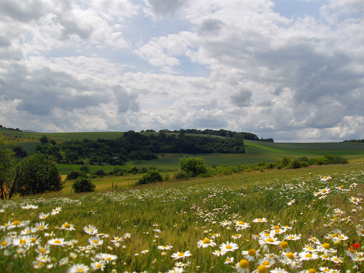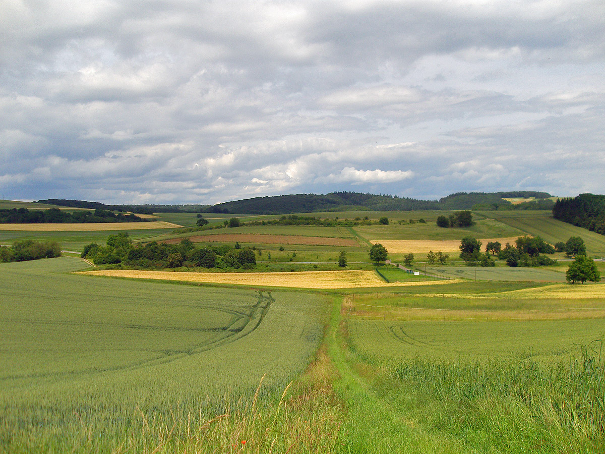 Bunte Fernsicht: Felder, Wiesen, Wald und Wein