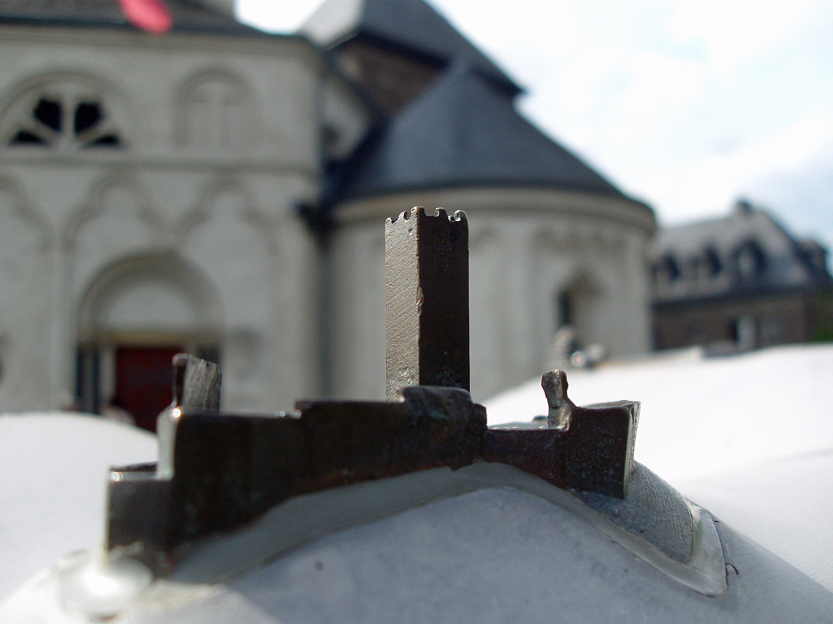 MoselblickLetztes Jahr war ich ebenfalls Ende Juni dort. Heute war es nicht ganz so heiß und durch die Wolken, die flott vorüberzogen, auch in kurzen Hosen angenehm warm. Nach dem Eingangsportal am Pfarrhaus in Kobern geht es auf einem schmalen Pfad in Serpentinen hinauf, vorbei an einer Madonnenstatue und einer Schutzhütte und mit herrlichen Blicken auf die Mosel über schmale Pfade entlang der bewaldeten Steilhänge.