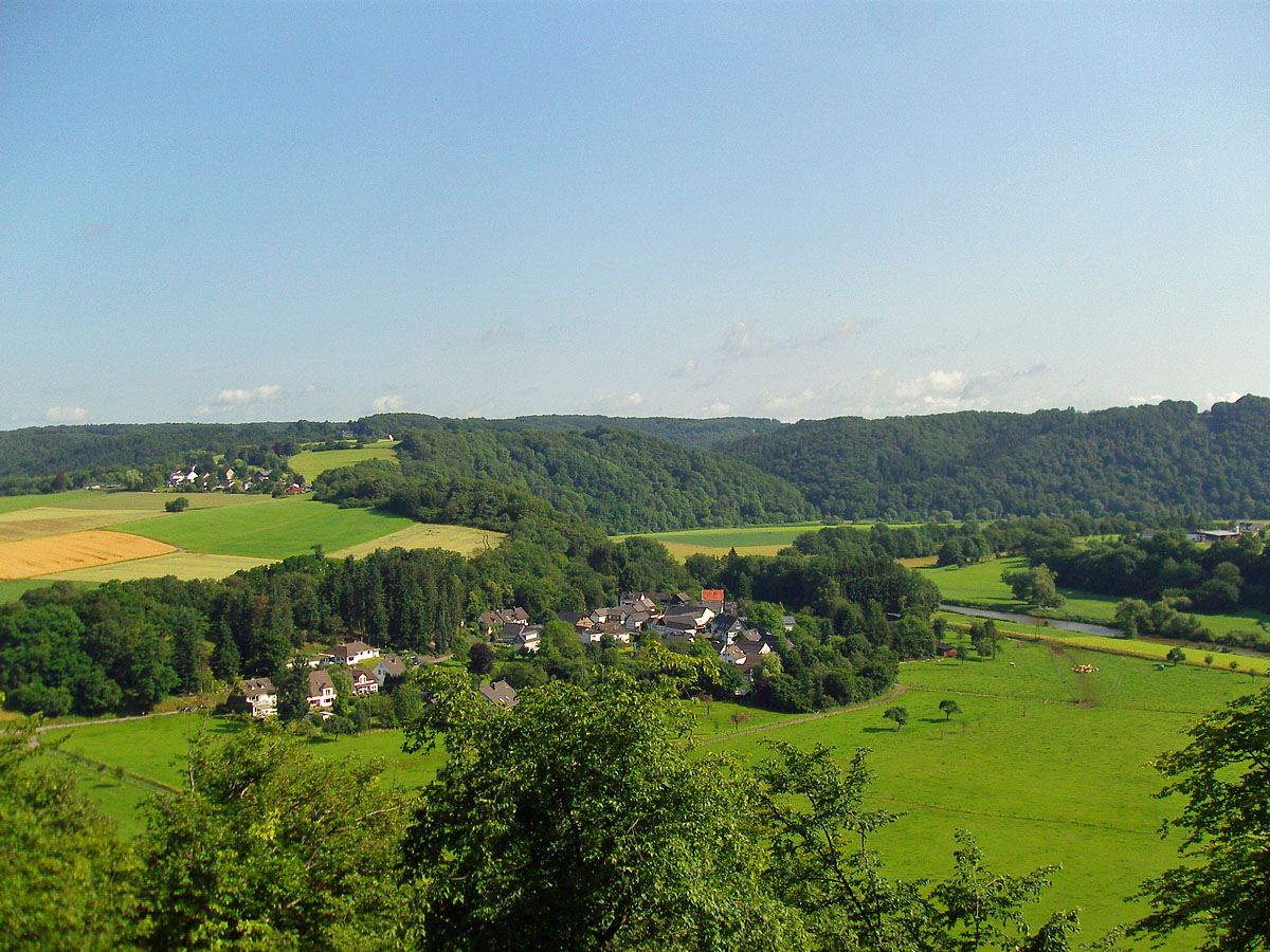 Ausblick von Blankenberg auf AuelBei strahlend blauem Himmel geht es also ein weiteres mal ins Siegtal. Der Startpunkt der Tour ist eigentlich oben an der Burgruine Blankenberg.
