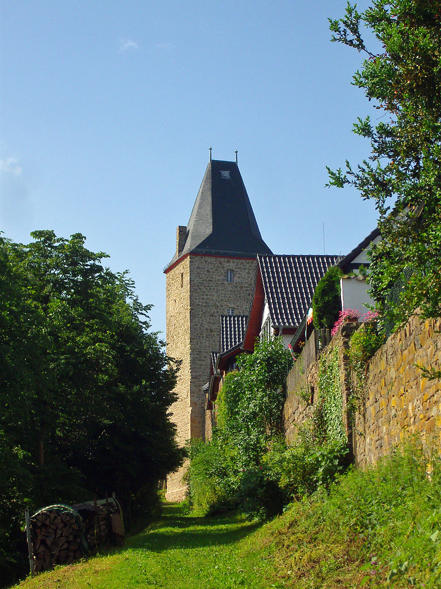 Ich ziehe weiter des Weges und genieße die Sonne. Der Weg führt auf Wiesenwege an der gut erhalten Stadtmauer der Stadt Blankenberg und der Altstadt vorbei. Nachdem ich Blankenberg fast einmal umrundet habe geht es auf einem schmalen Pfad hinab.