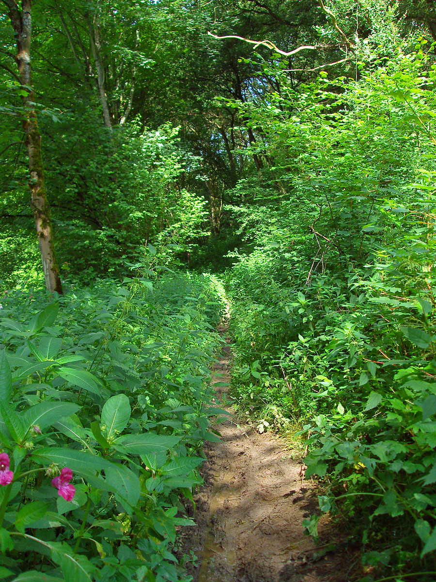 schmaler PfadDurch den Regen der letzten Tage ist dieser Pfad nun etwas matschig und ich muss ein wenig aufpassen nicht auszurutschen. Es geht am Ahrenbach entlang und später an einer bunten Sommerwiese vorbei.
