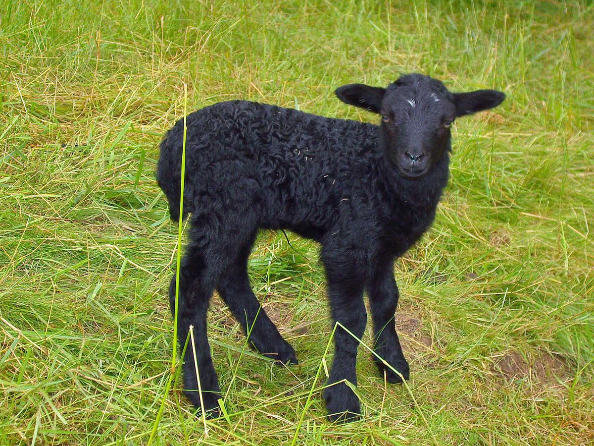 Nun folgt ein Asphaltweg und in Ahrenbach ist direkt neben dem Weg schwarzes Lammeine gemischte Schaf- und Ziegenherde. Ein kleines schwarzes Lamm blökt mich an uns schaut mich mit seinen Knopfaugen an.