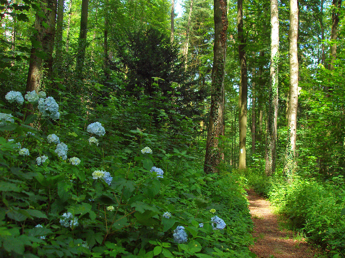 Start ist ebenfalls an der St. Kastor Kapelle in Rengsdorf und bis Ehlscheid folge ich dem idyllischen Klosterweg. Auch wenn ich dieses Teilstück schon kenne, wirkt der Weg zu einer anderen Jahres- und Uhrzeit wieder ganz anders und offenbart mir zum Beispiel wunderschöne Hortensien, die am Wegesrand blühen. Dieser Weg ist einfach idyllisch und selbst beim zweiten Mal kein bisschen langweilig.