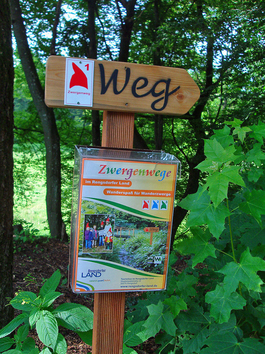 Übrigens bin ich am Parkplatz Mühlenweiher/Obere Mühle an einem Informationsstand vorbeigekommen, der auf die Zwergenwege (drei kurze Rundwege von 2 bis 4,2km) hinweist und Wettergeschützt entsprechende Infoprospekte mit Wanderkarte im DINA4 Format bereithält.