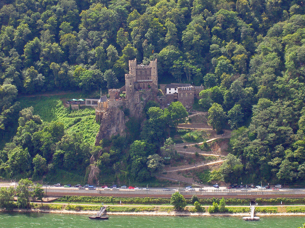 Dann folgen wieder Weinberge und mit Blick auf die Rotweinlaube, deren „güldenes Dach“ in der Sonne leuchtet kann ich schon Assmannshausen und die gegenüberliegende Burg Rheinstein erkennen.