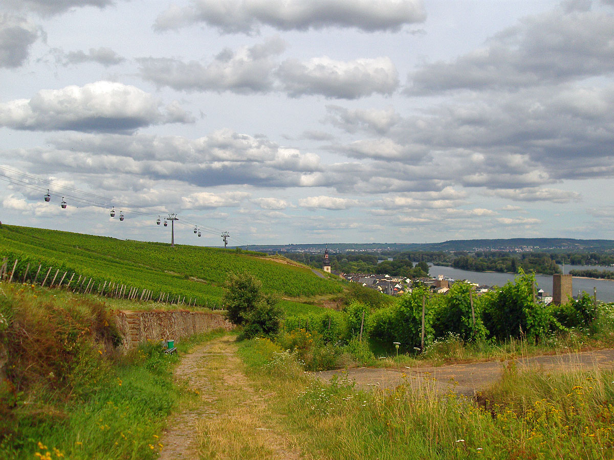 die SeilbahnTypisch Rheinsteig: In Assmannshausen geht es erst 250hm hinab um dann an unterhalb der Seilbahn wieder 250hm bergauf zu gelangen.