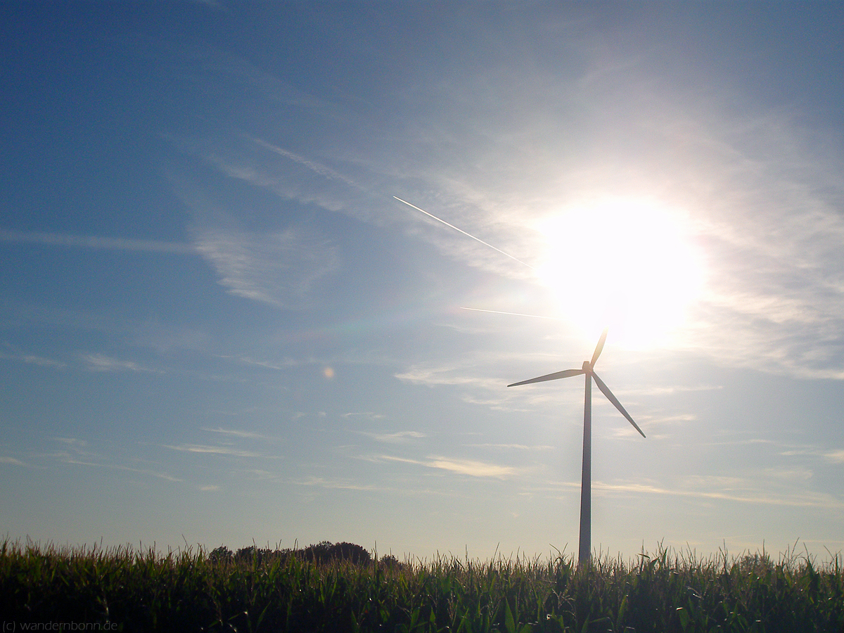 Von meiner Wohnung aus kann ich die Windräder im Windpark Weibern – das liegt ca. 30km Luftlinie südlich von mir – erkennen. Je nach Wetterlage sogar erkennen, wenn sie sich im Wind drehen. Näher würde ich allerdings auch nicht dran wohnen wollen…