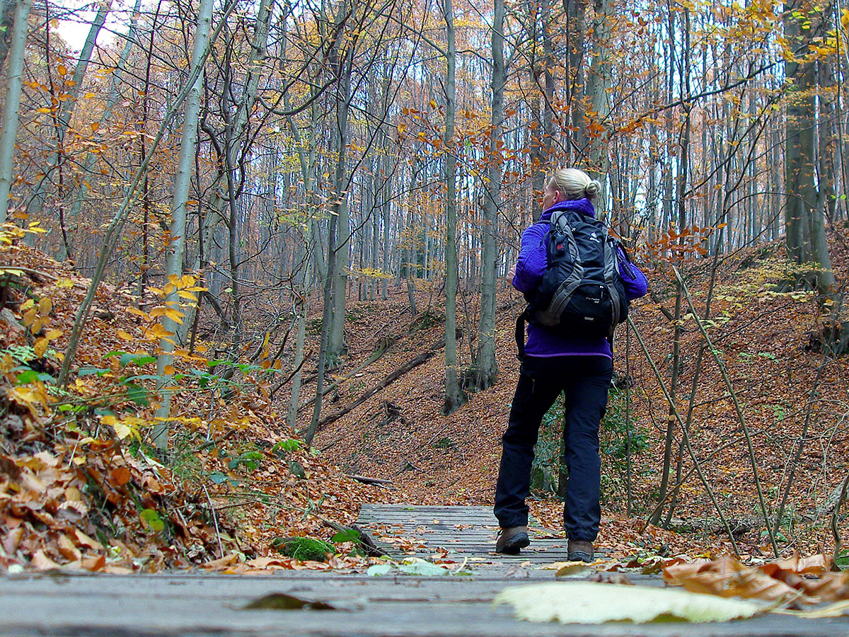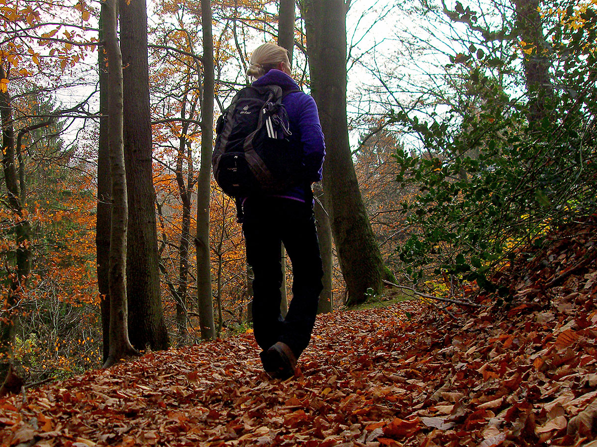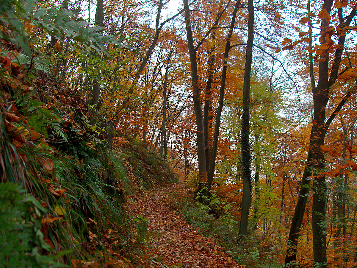 Ab hier folgen herrliche Pfade, mal am Waldrand vorbei, dann mitten durch. Und immer noch jede Menge buntes Laub an den Bäumen. Weiter geht es hinab bis ins Annatal um dann wieder bergauf durch das Tretschbachtal geführt zu werden.