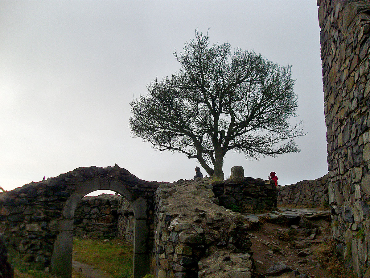 Neben der Ruine gab es noch einige Gitter, der Aufgang über die Holzstufen war jedoch frei, also ging es bis zum höchsten Punkt auf 455m.