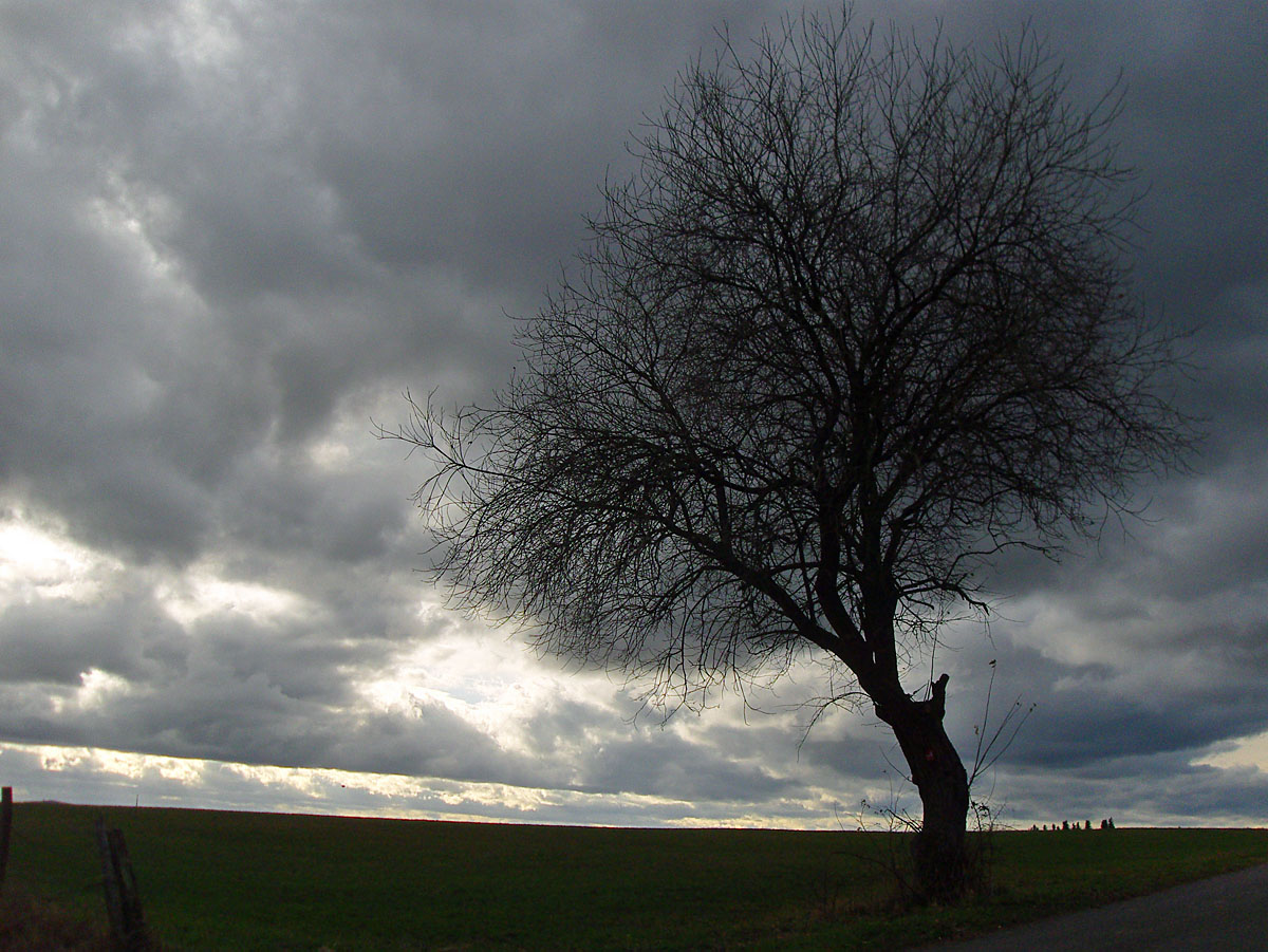 Der Landlebenweg führt als Rundweg auf einer Länge von 15,5km hoch über dem Siegtal durch das Windecker Ländchen. So ging es heute nachdramatische Wolken Windeck. Am Parkplatz angekommen zog es wie Hechtsuppe. Also winddicht verpackt und auf ging es.