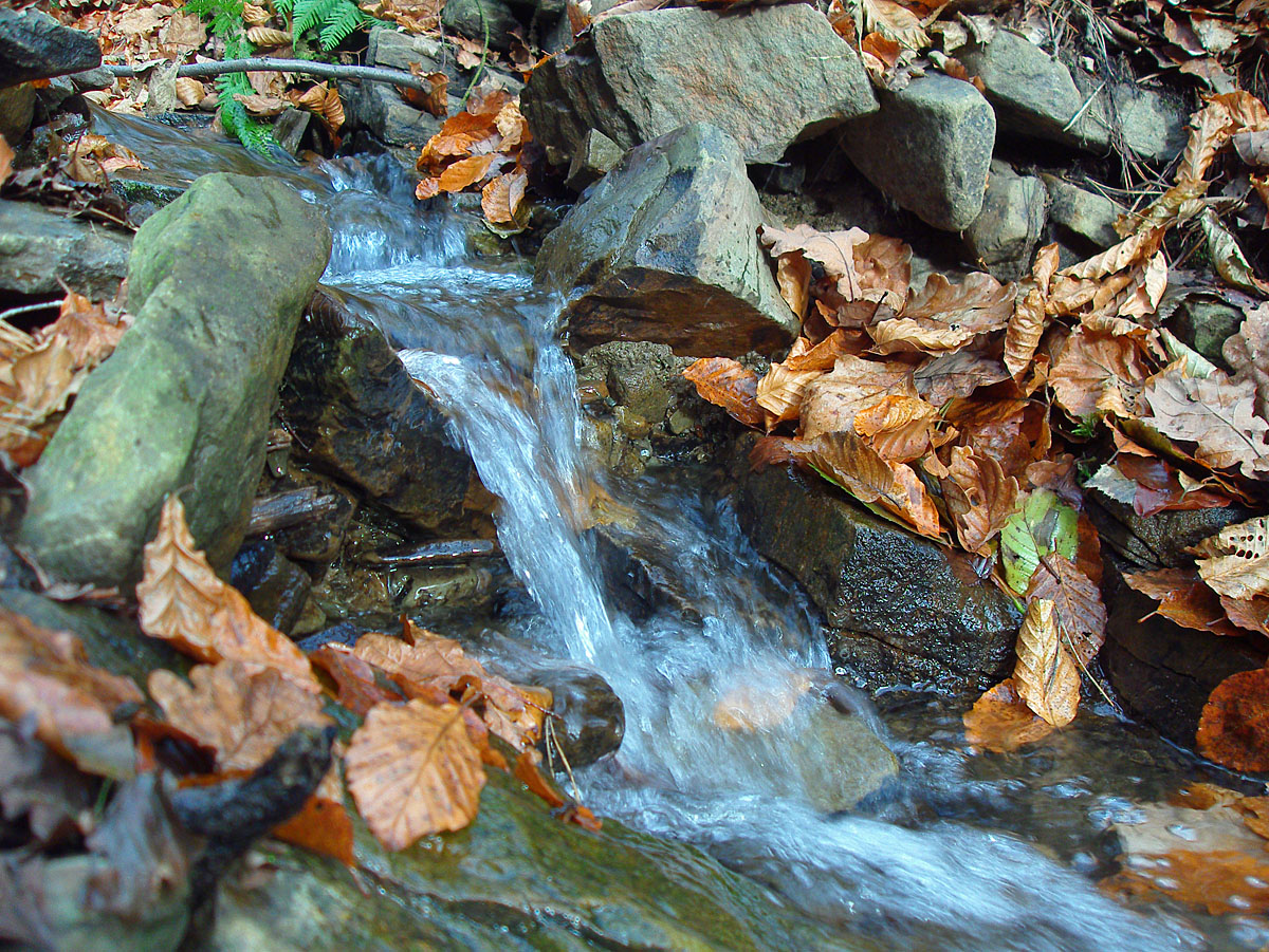 Nachdem ich Langenberg passiert habe treffe ich auf die 8te Etappe des Natursteig-Sieg, dem ich für die nächsten 2,5km folge. Jetzt ohne Laub wirkt die Strecke doch ganz anders und mein Auge findet andere spannende Dinge, die mir im Sommer kaum aufgefallen sind. Moose, Flechten, Pilze und der kleine Bach, der durch das Tal fließt.