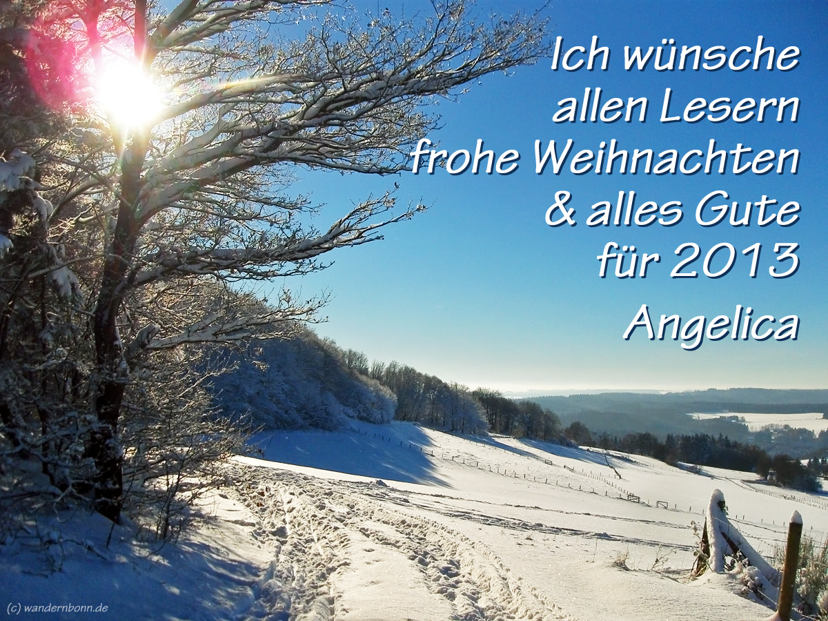 ich wünsche dir auch ein frohes Weihnachtsfest, Ein paar besinnliche Stunden und einen guten Start ins Jahr 2013 und ein neues Jahr voller Gesundheit und immer voller Wander- und Schreiblust 😀 !