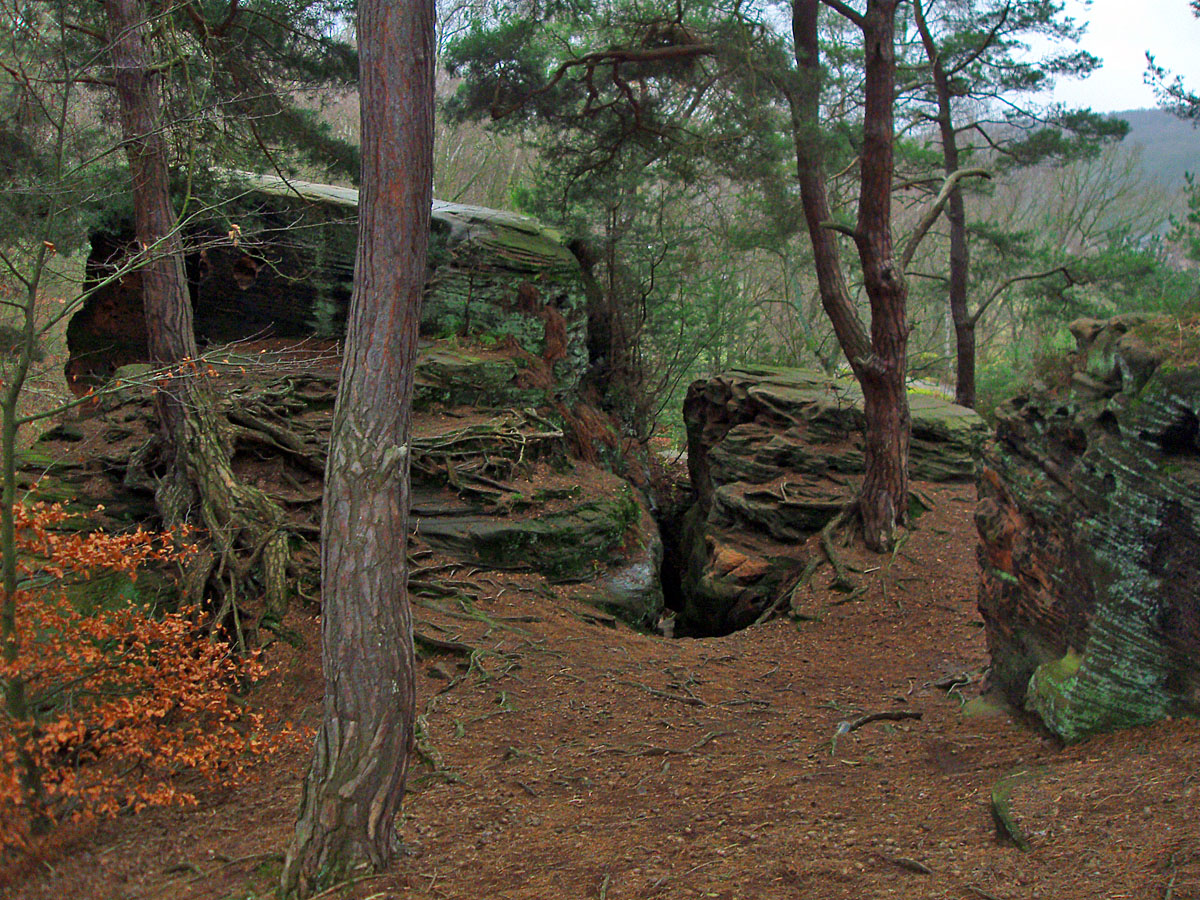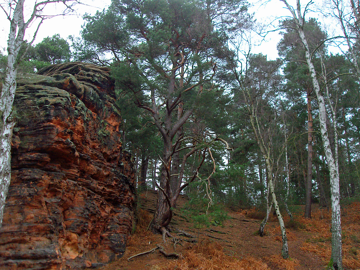 mächtige Buntsandsteinformationen zwischen den Kiefern