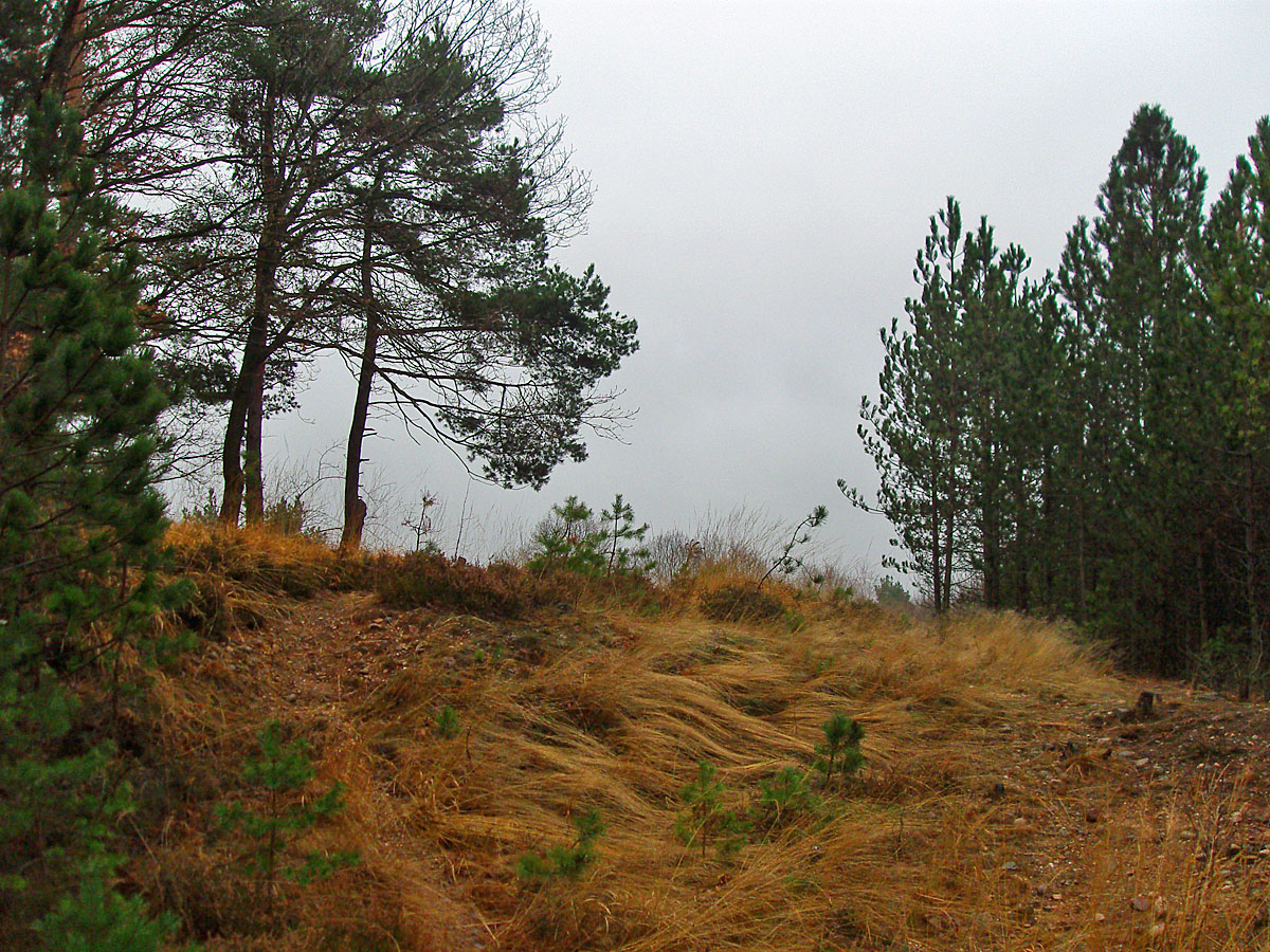 Das heute nicht mit Weitsicht zu rechnen war, wusste ich. Aber es ist so schön hier oben. Der sandige Boden, Heidekraut und Kiefern rundherum.