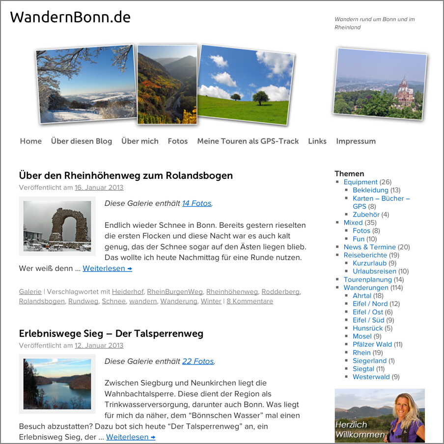 Mich würde es natürlich freuen, wenn Blogger oder Seitenbetreiber, die mich verlinkt haben den Link entsprechend auf http://WandernBonn.de ändern würden. Herzlichen Dank bereits vorab für die Mühe. 🙂