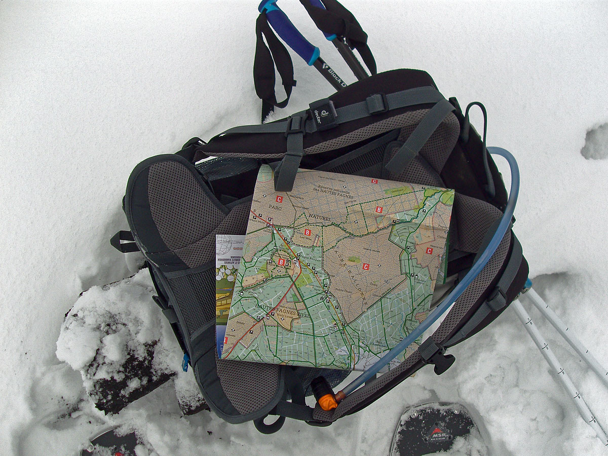Für diese Runde habe ich die Tour Nr. 50 von NAE „Über Holzstege und Pfade rund ums Wallonische Venn“, die ursprünglich 15km ist auf 11,5 km gekürzt. Diese Strecke hat immerhin für eine über 5 Stunden dauernde und mehr als spannende Wintertour gereicht. Nein, Tempo konnte ich nicht machen, aber das Gefühl der ersten Tiefschnee-Tour war schon klasse!