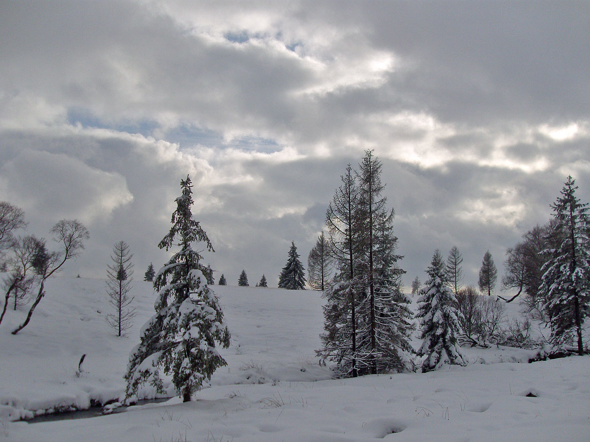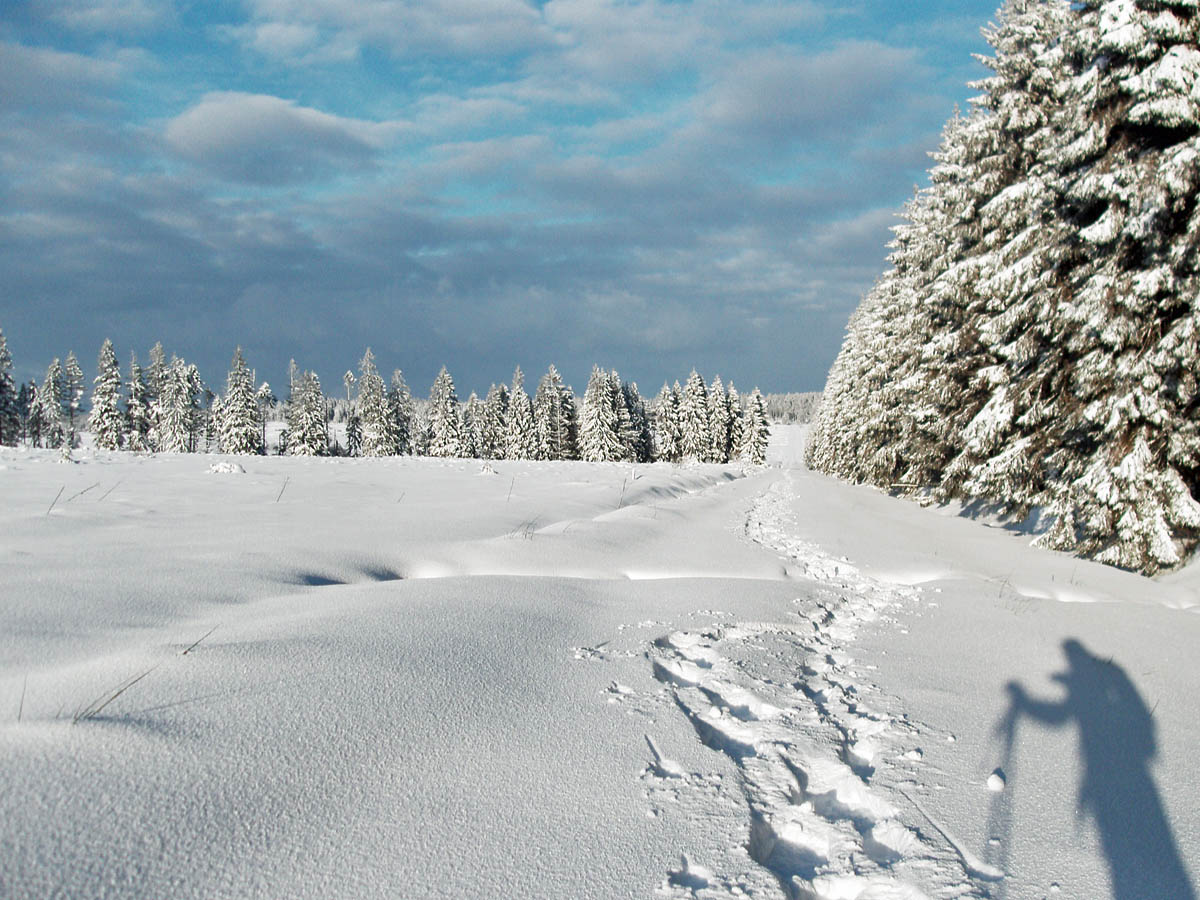 gespurt. Links die Spur für die Langläufer, rechts ein extra Weg für die Wanderer, damit diese nicht in der Loipe laufen, was die Langläufer nicht gern sehen. Mir war es recht, konnte ich mich hier zwischendurch ein wenig von der Tiefschneestapferei erholen.