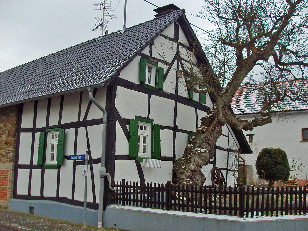 Also mache ich mich bereits nach einem Becher wieder auf und werde durch Pomster geleitet. Die Beschilderung ist von Beginn der Tour an perfekt und sogar Entfernungsangaben sind auf den Wegweisern angegeben. Da hat das Projektteam ganze Arbeit geleistet!Fachwerk in Pomster
