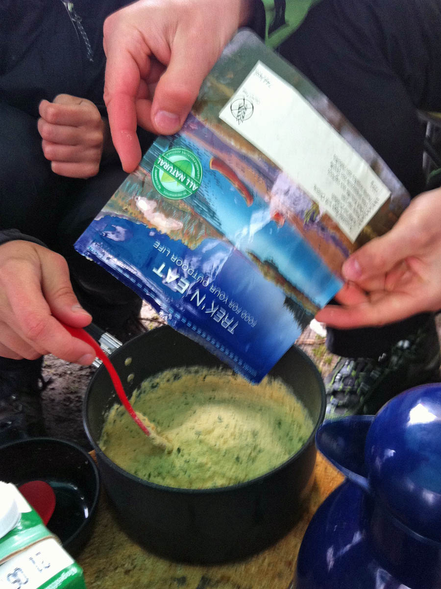 RühreiDie Test-Trekkingnahrung wurde probiert und so gab es neben Müsli sogar Rührei zum Frühstück 😉