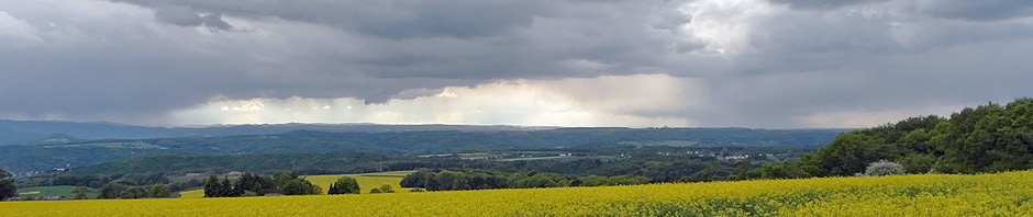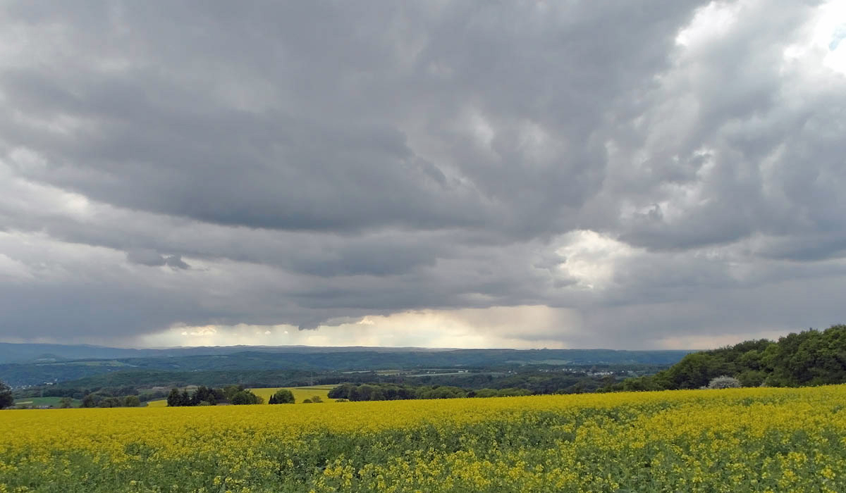 Die gelben Rapsfelder, das Spiel der Wolken und die wenigen Sonnenstrahlen, in weiter Ferne gehen Schauer nieder. Für mich bleiben solche Eindrücke spannender, als es ein blauer Himmel bieten kann.