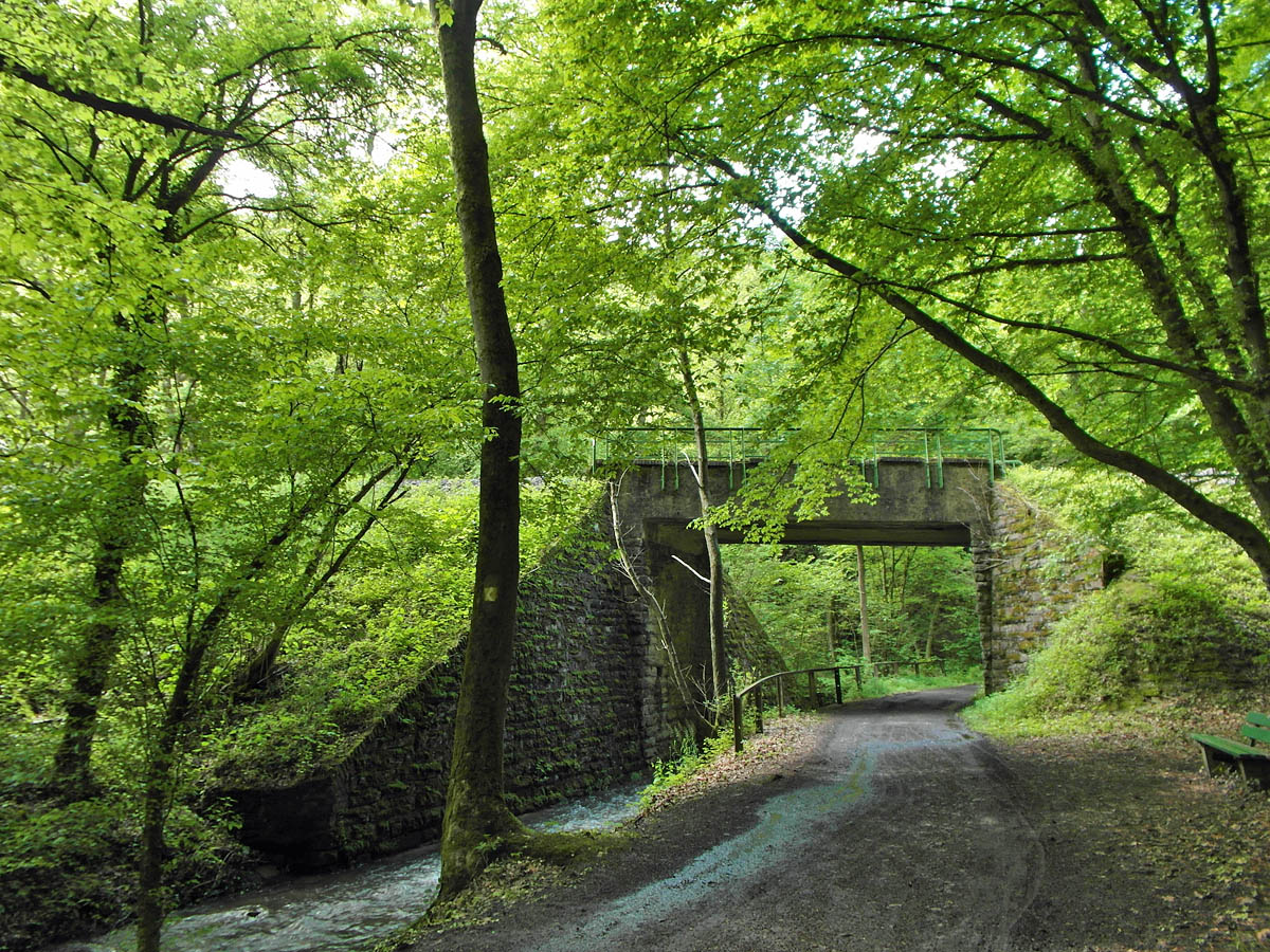 So wechselt der Wegeverlauf stetig sowohl den Kasbach als auch die Bahngleise und führt mehrfach unter Brücken unter der Kasbachtalbahn – die nur am Wochenende, Feiertagen und im Sommer auch Mittwochs verkehrt (siehe Fahrplan) – hindurch.