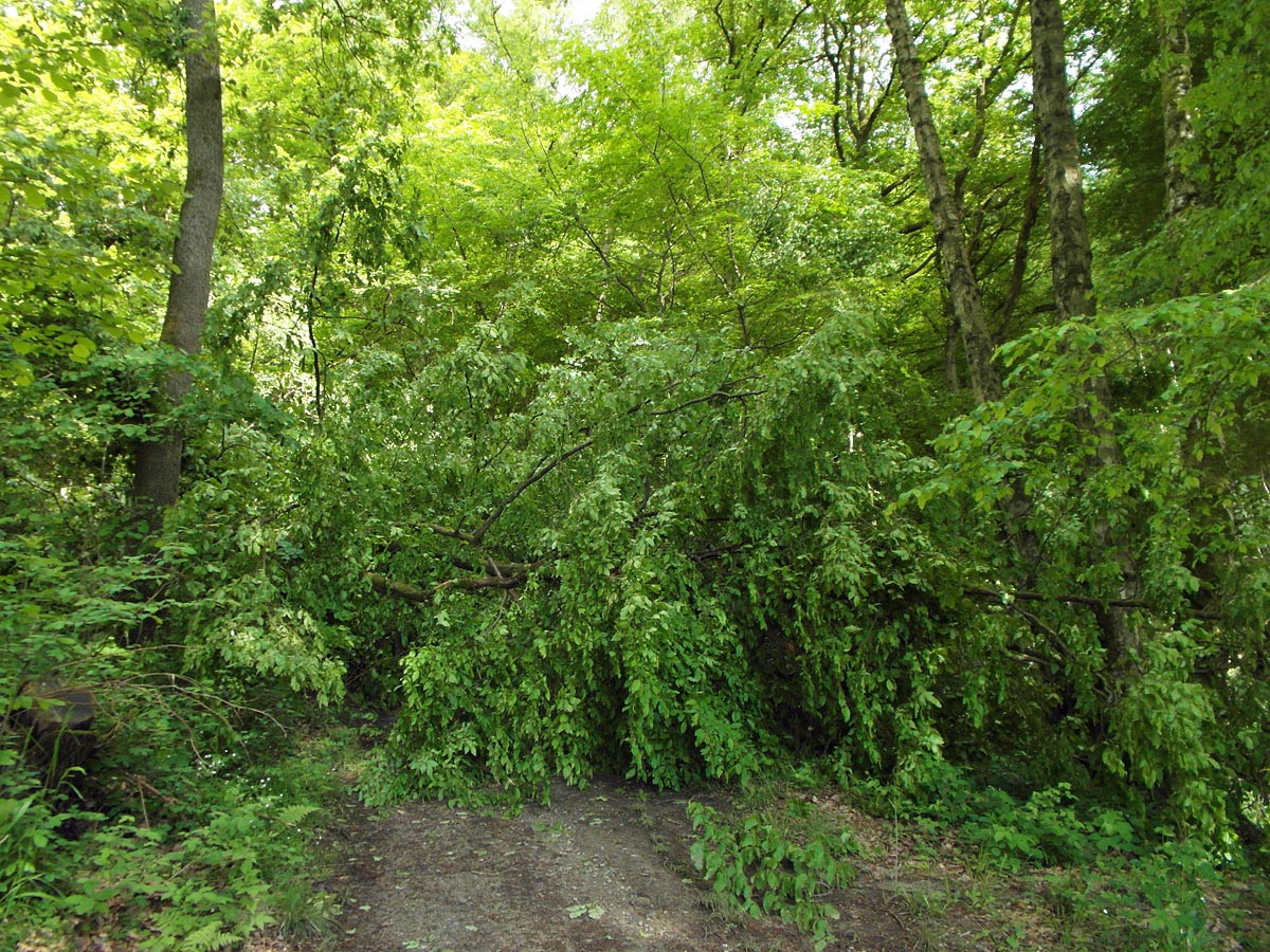 versperren mir mehrere Bäume die vermutlich durch den vielen Regen umgeknickt sind, den Weg. Ich traue mich nicht, durch die mächtigen Kronen hindurch zu klettern, da ich befürchte, das die Bäume nicht fest genug liegen.