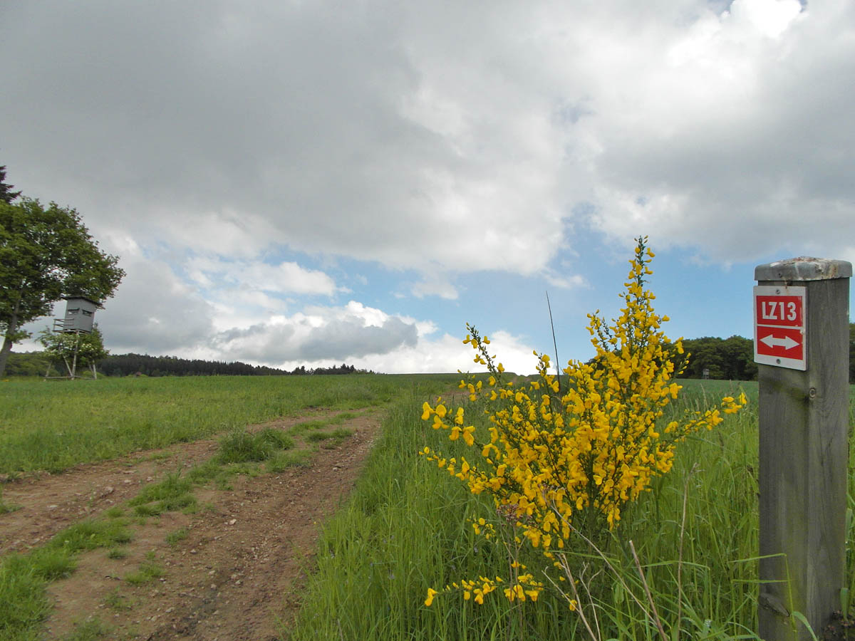 So geht es über Wiesenwege an Ginster vorbei weiter in die Höhe. Feldwege folgen und im weiteren Verlauf bietet sich immer mehr Weitsicht.