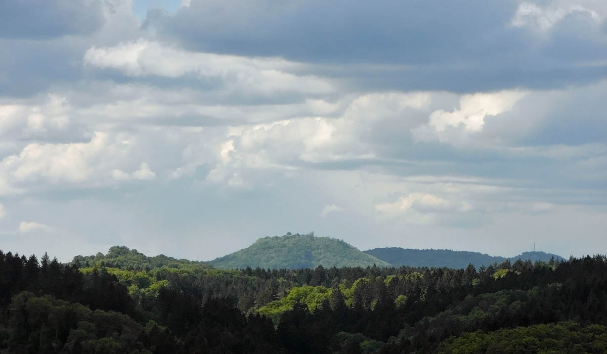Von hier aus kann ich die Löwenburg und den Ölberg erkennen und auch Wachtberg mit dem Radom liegt im Blickfeld.