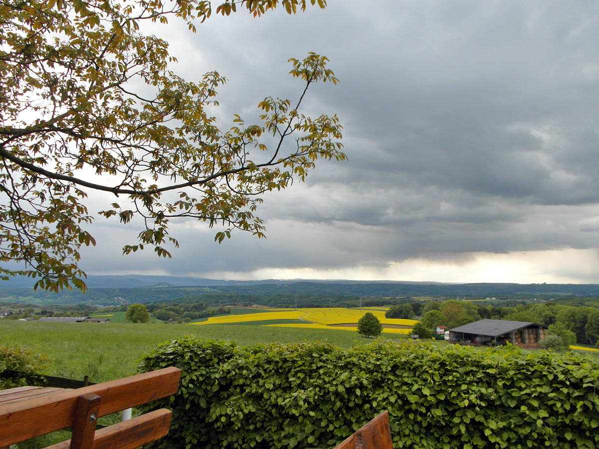 Von meinem Balkon aus habe ich einen wunderschönen Blick auf den Rheinwesterwälder Vulkanrücken und die Höhen zwischen Königswinter und Leubsdorf.