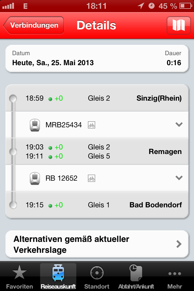 DB-NavigatorHier endet der AhrSteig offiziell und mit einem Blick auf die DB-Navigator App überprüfe ich, wann der nächste Zug nach Bad Bodendorf fährt.