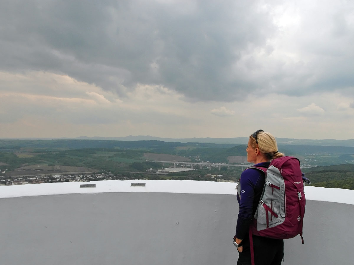 Es geht am Generationenwald Sinzig vorbei und obwohl der Feltenturm nicht direkt auf der Strecke liegt, beziehe ich diesen auch noch ein. Allerdings windet es hier mächtig, so dass ich bei dem Selbstauslöserbild um meine Kamera bange… 😯