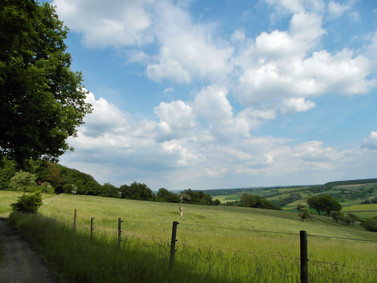 PanoramablickKeine Ahnung, ob der so heißt, jedenfalls bietet er nach Rechts tolle Aussichten. Das frische Grün der Wiesen und der gelbe Raps bieten auf den sanften Hügeln ein herrlich buntes Bild.