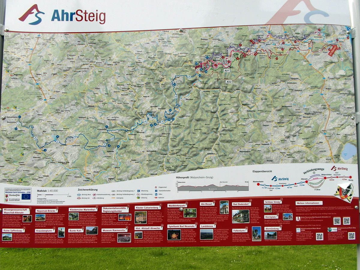 AhrSteig-InfotafelDie Beschilderung ist vorbildlich und ca. 1km vor dem Feltenturm gibt es sogar noch die Möglichkeit über einen ausgeschilderten AhrSteig-Zuweg nach Bad Bodendorf zu gelangen.