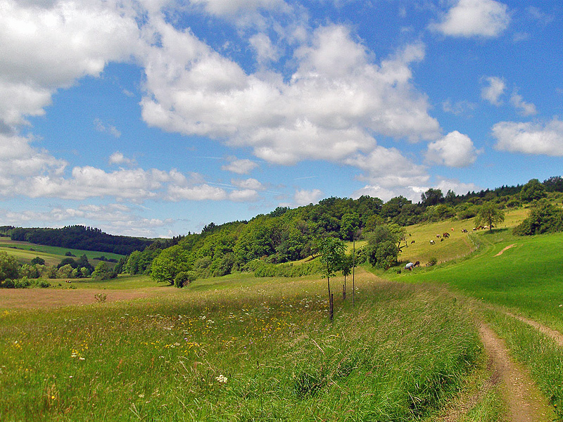 Wenn ich dazu noch über einen frischgemähten Wiesenweg streifen kann und unter meinen Sohlen die trockenen Gräser rascheln.