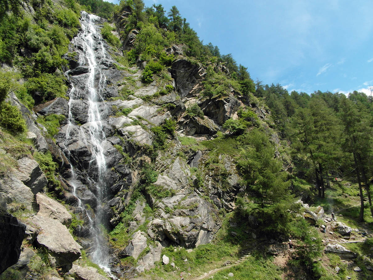 Von der Hohen Wiege – einem Aussichtspunkt– gab es einen tollen Blick ins Tal und hinter mir auf die Lazinser Rötelspitz. Weiter ging es auf Pfaden an Wasserfällen vorbei bis zur Tablanderalm, die derzeit nicht bewirtschaftet ist. Hier machte ich eine kurze Rast und traf einen älteren Mann, der mir erzählte, das oben an der Stettiner Hütte noch jede Menge Schnee lag und mir hilfreiche Tipps gab.